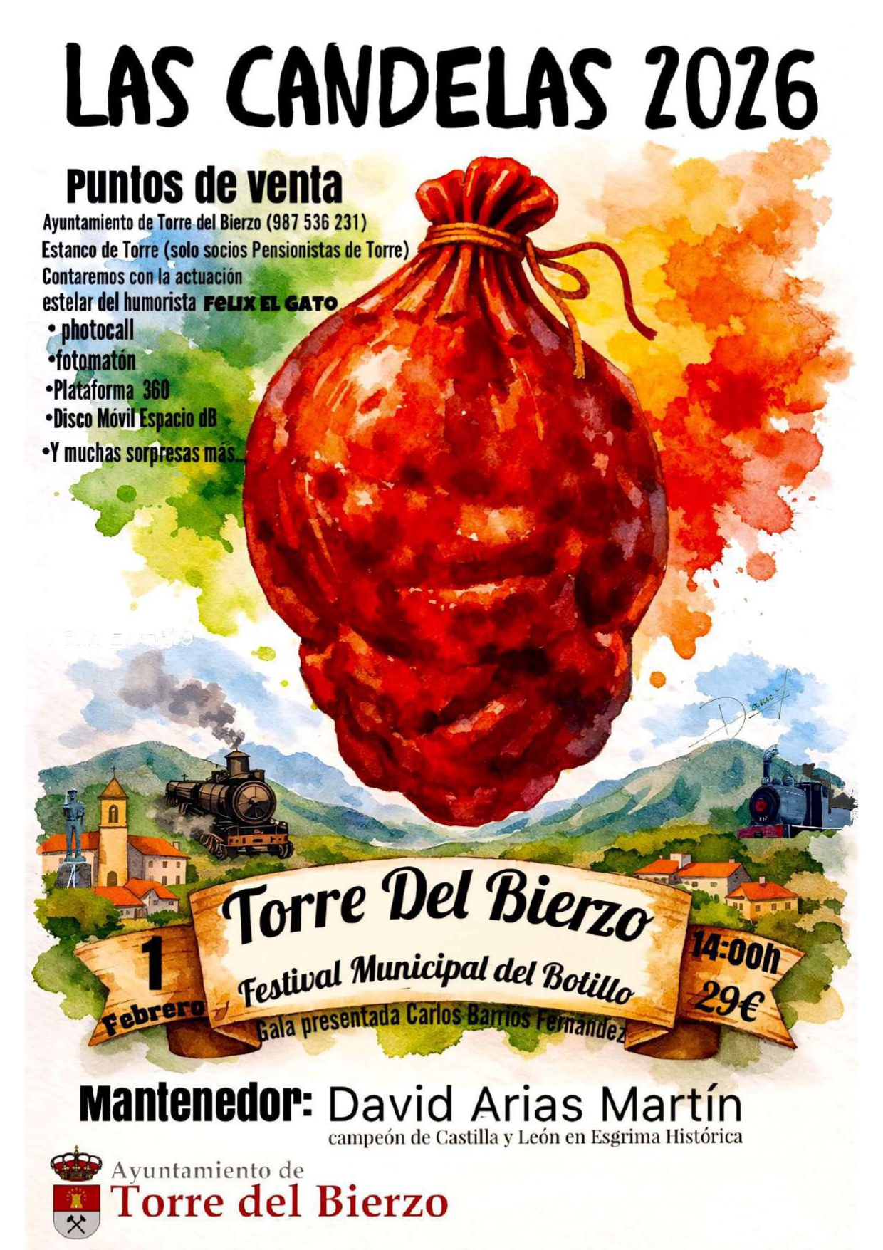 Torre del Bierzo celebrará su Festival Municipal del Botillo “Las Candelas 2026” el próximo día 1 de febrero. El acto organizado por el Ayuntamiento contará este año con D. DAVID ARIAS MARTÍN como mantenedor, Campeón de de Castilla y León de Esgrima Histórica. Natural de la localidad de Torre del Bierzo.
